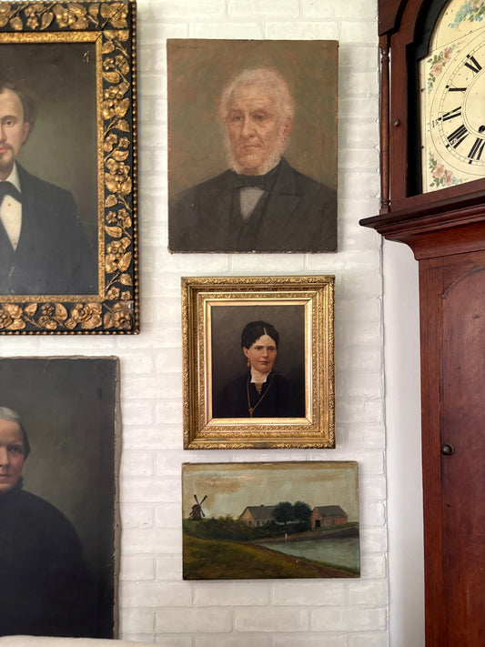 Antique large landscape oil painting on canvas| dog & sheep in pasture