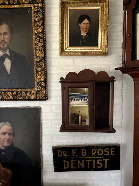 Antique early primitive wall cabinet with scallops