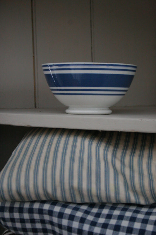 Antique blue stripe footed bowl