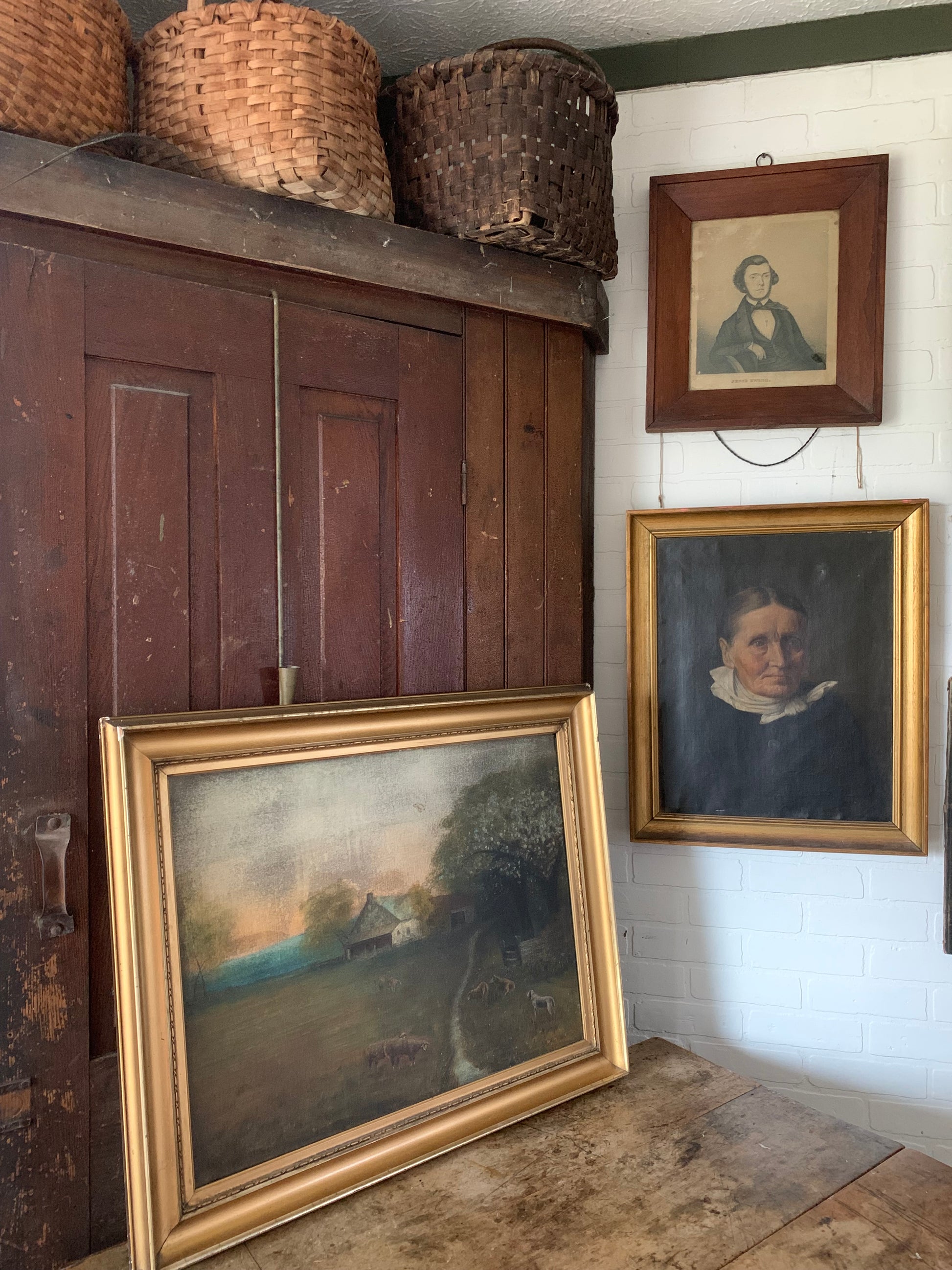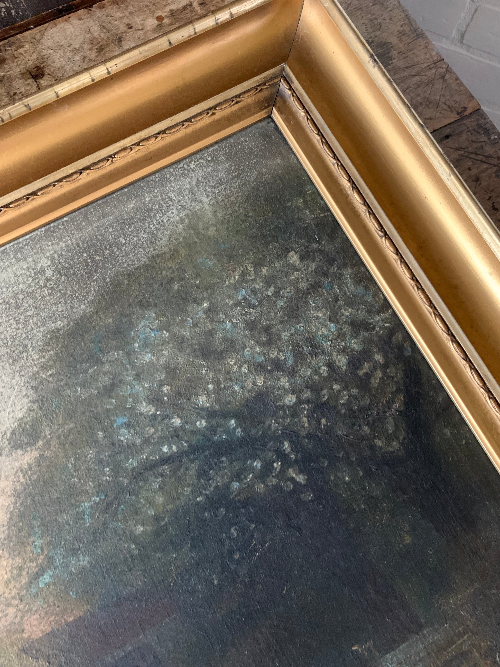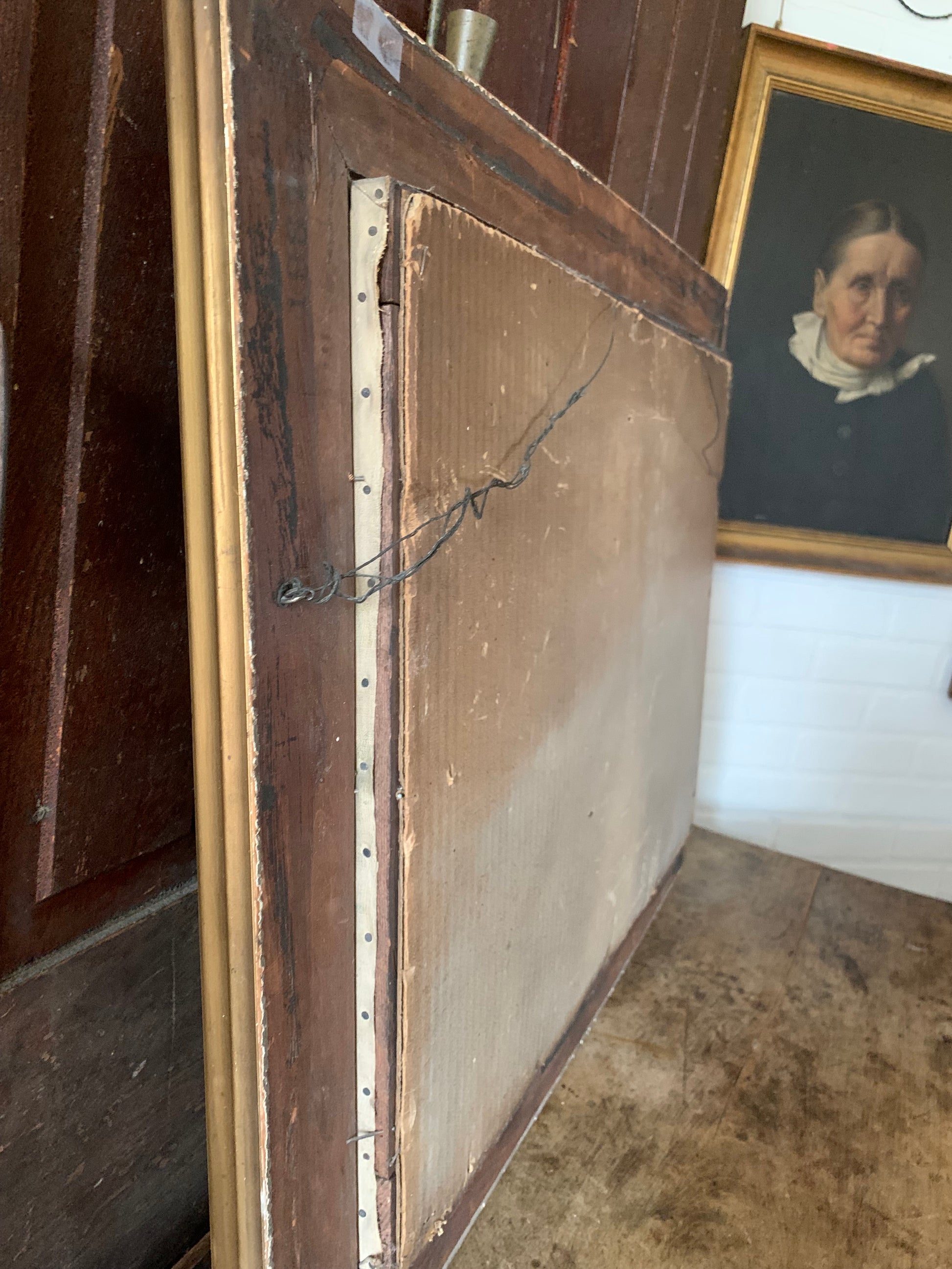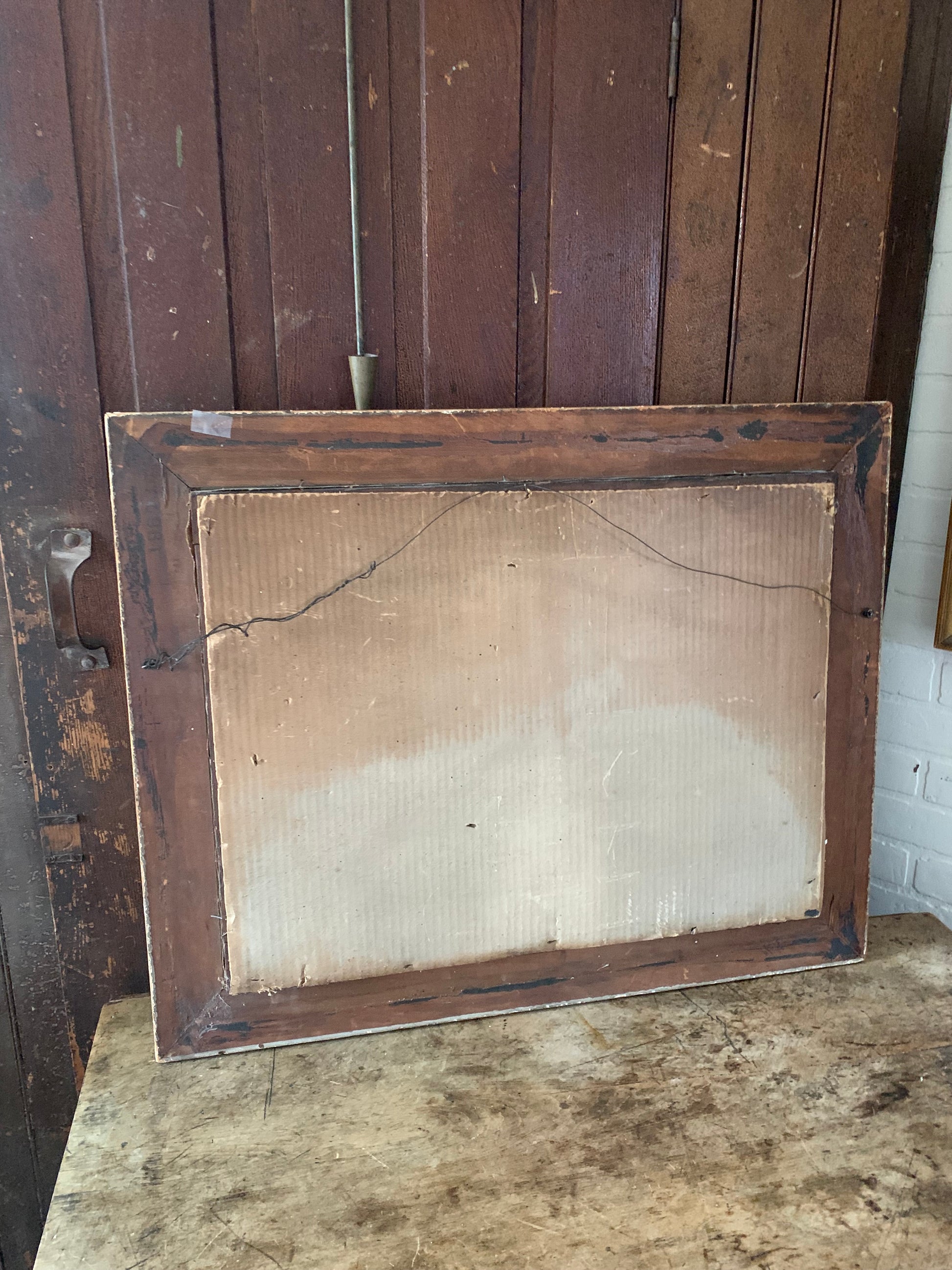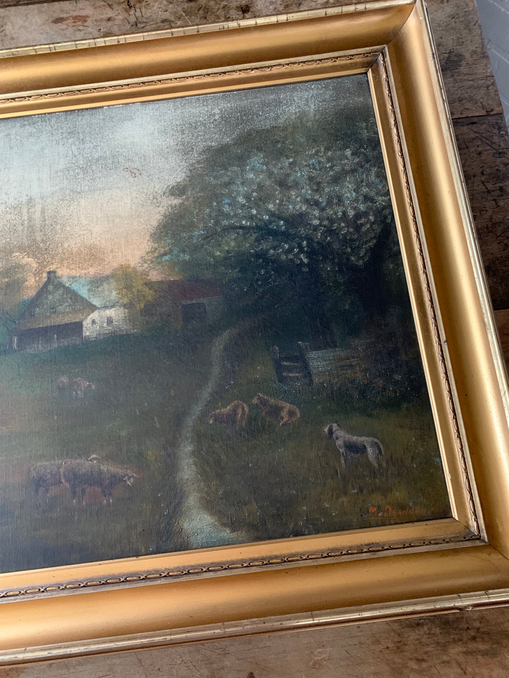 Antique large landscape oil painting on canvas| dog & sheep in pasture
