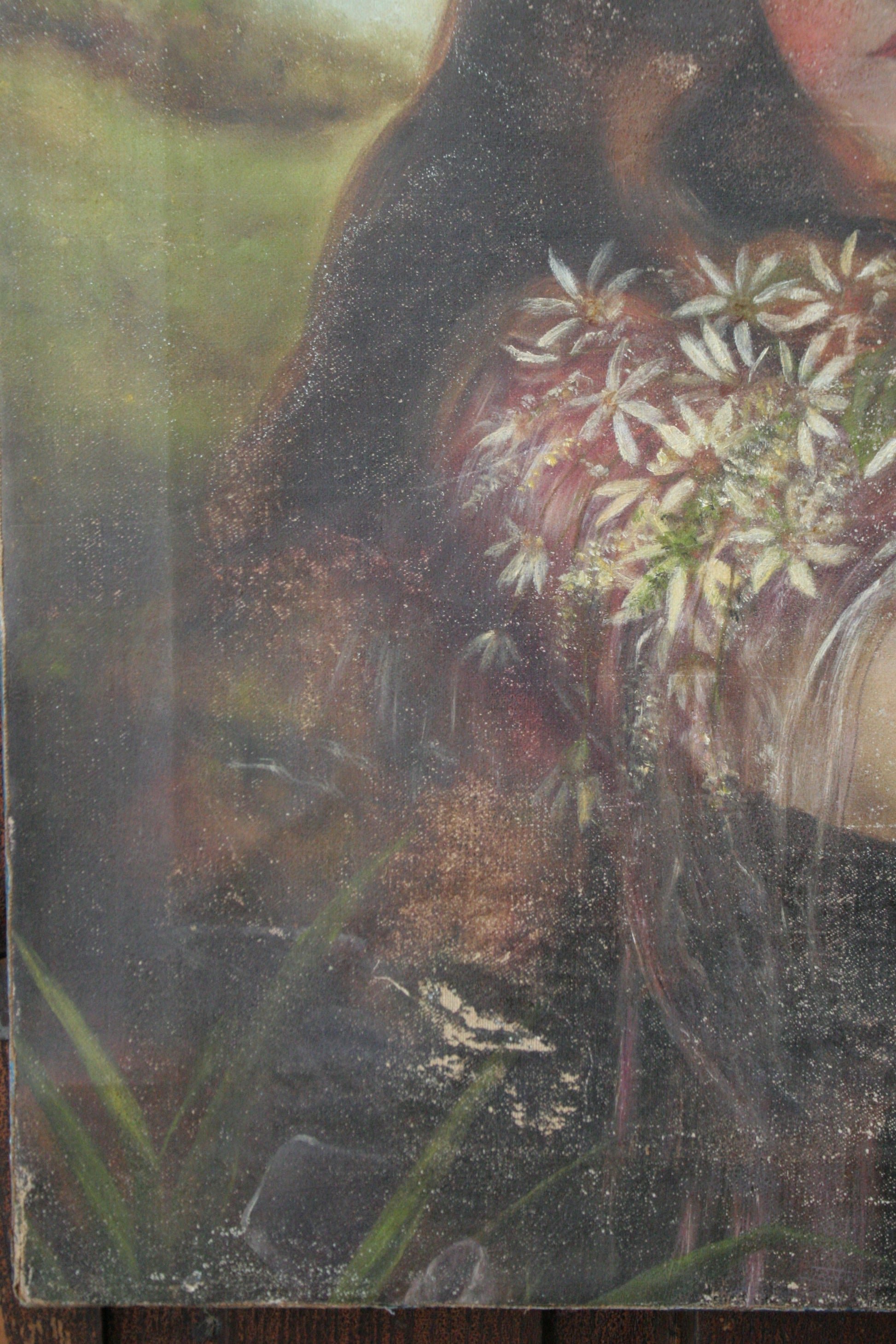 Antique portrait painting of woman on canvas