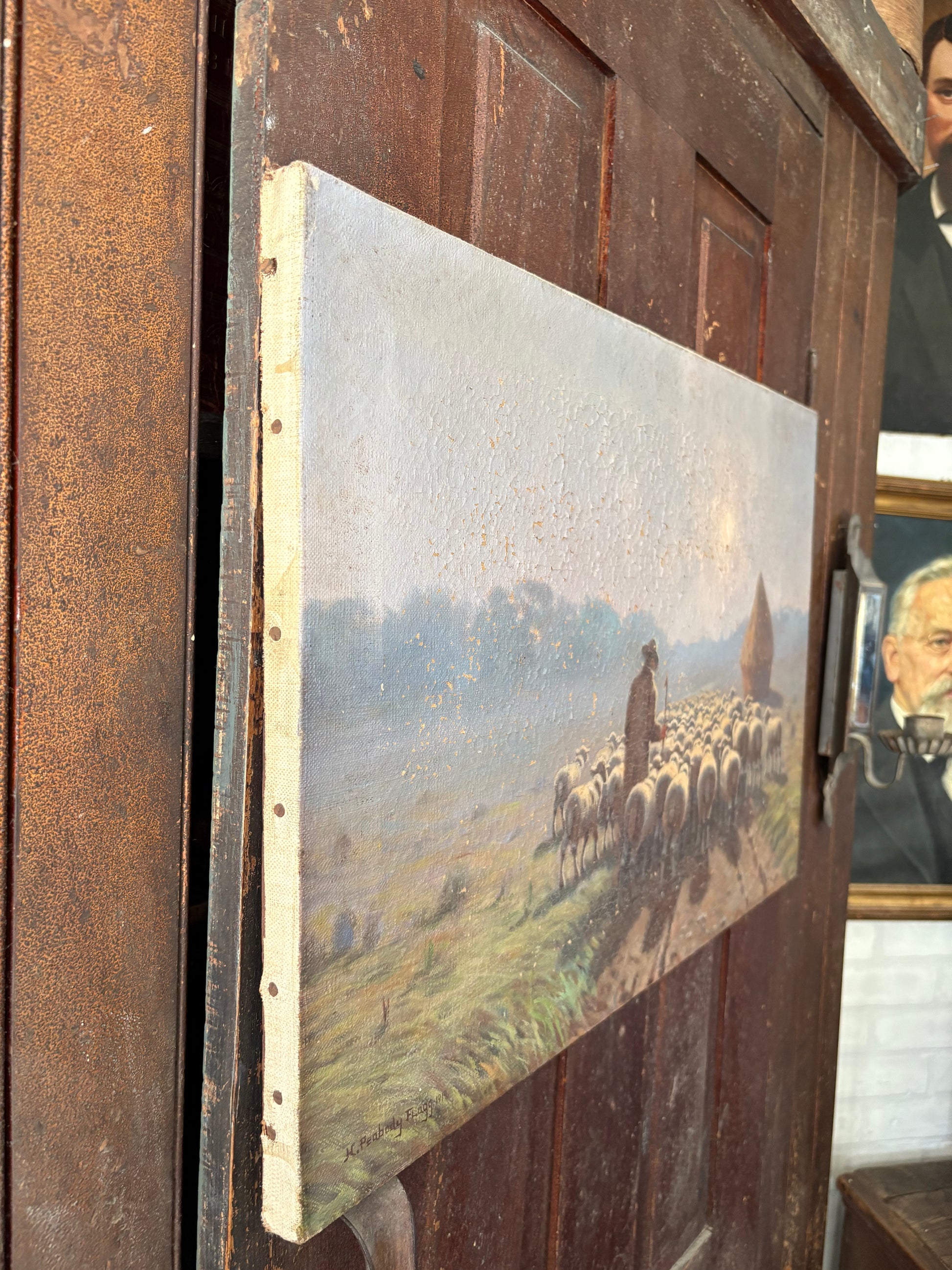 Antique signed 1919 sheep painting