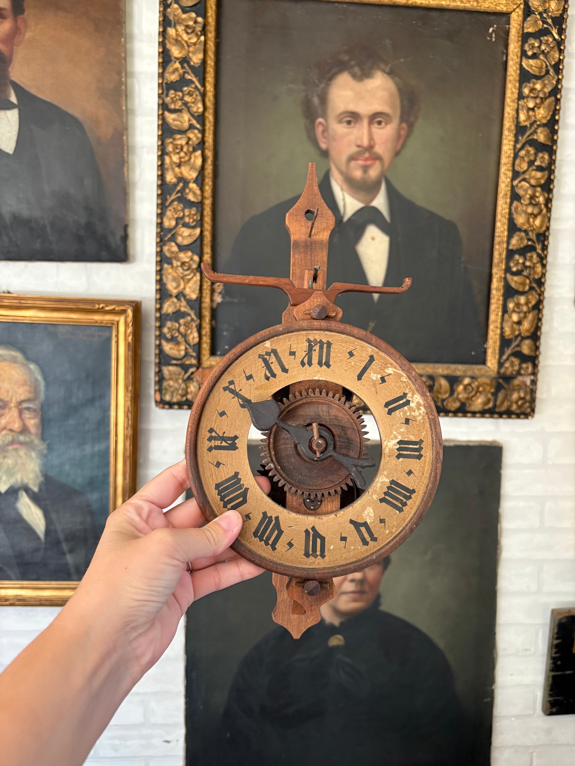 Vintage folk art wooden clock by “BOTT”